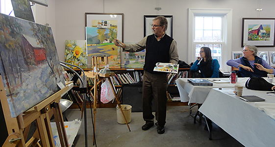 Demonstrations in either oils or watercolor are offered as a method to instruct, motivate and entertain. Many northern Illinois and Chicago area art organizations have enjoyed painting demonstrations, critiques and judging of their members' artwork for over 30 years.